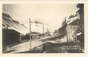 | Spitzbergen - Svalbard | Spitsbergen - Svalbard. Gatebilede Longyear City. | Spitsbergen - Svalbard. Midnatssol ved Gaasöerne. |